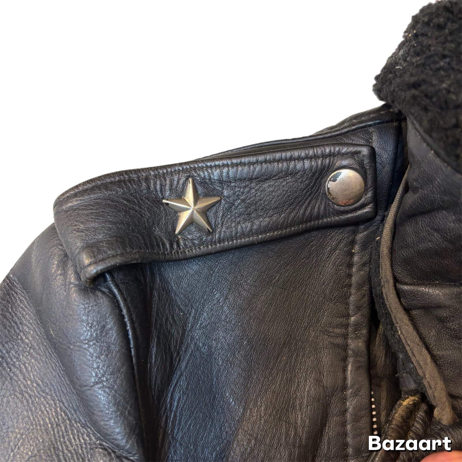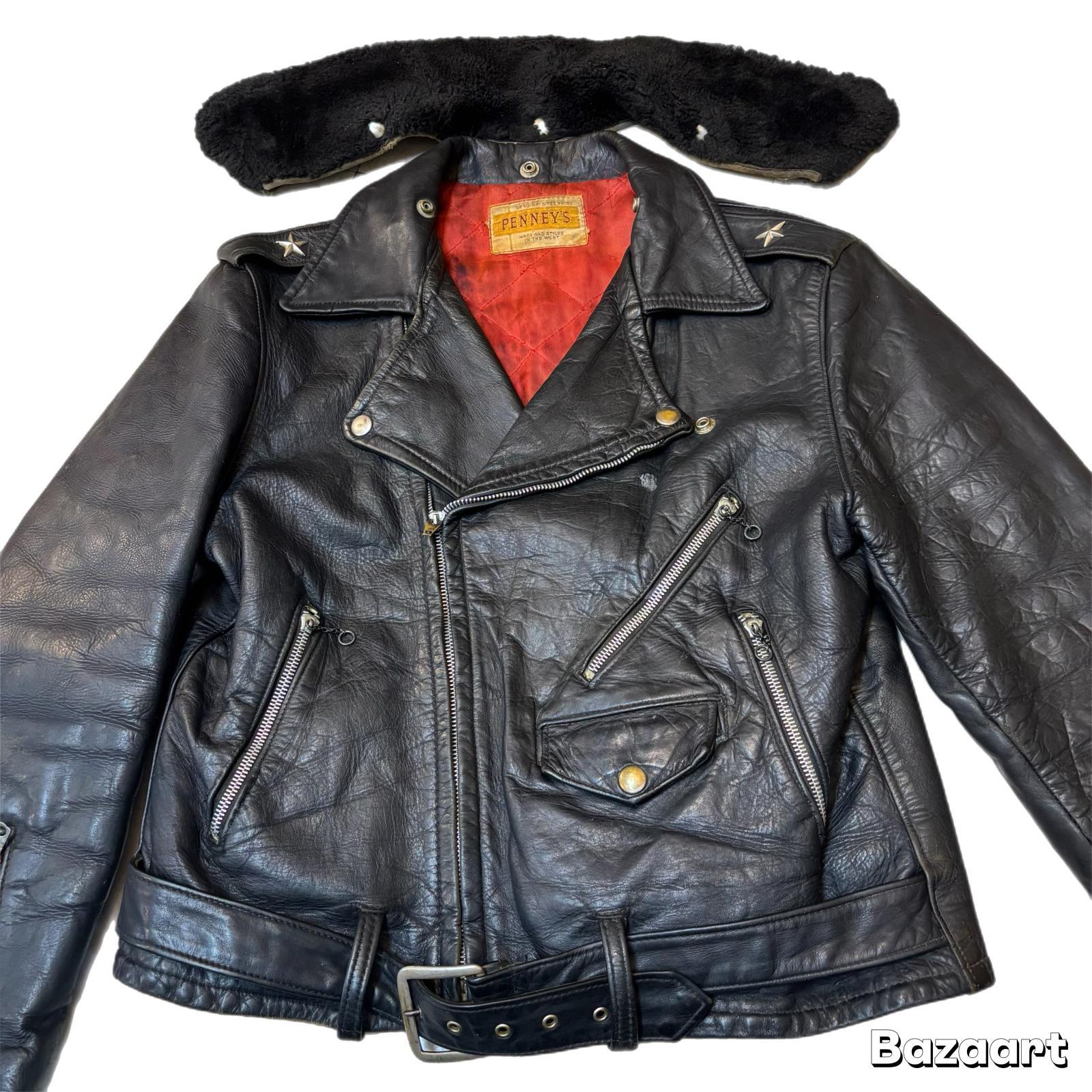 50's "PENNEY'S" 「ONE STAR」 DOUBLE BREST LEATHER JACKET WITH DETACHABLE BOA COLLAR good condition !! good size !!